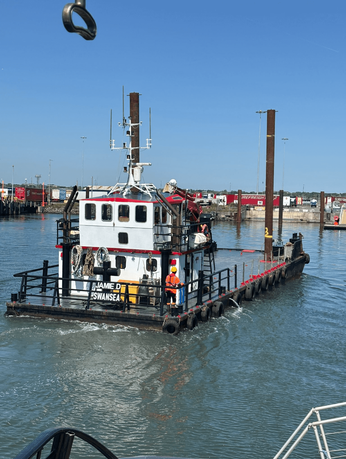 Powered by twin 480HP Doosan L193TI engines delivering a combined 800 BHP, she benefits from reliable twin screw propulsion and strong manoeuvrability. With an 8-tonne bollard pull and a maximum speed of 8 knots, Jamie D is well equipped for demanding marine operations.
